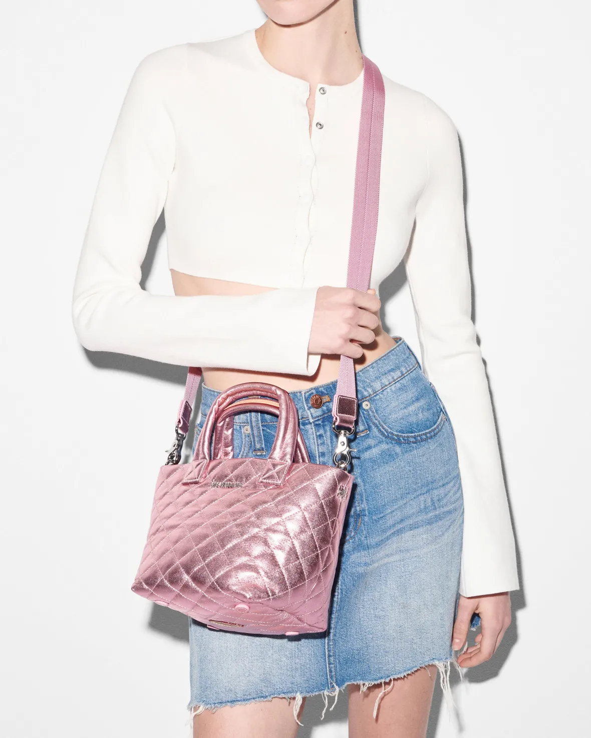 Metro|Crossbody<MZ Wallace The Metro Tote® Deluxe – Micro RoseMetallicLeather